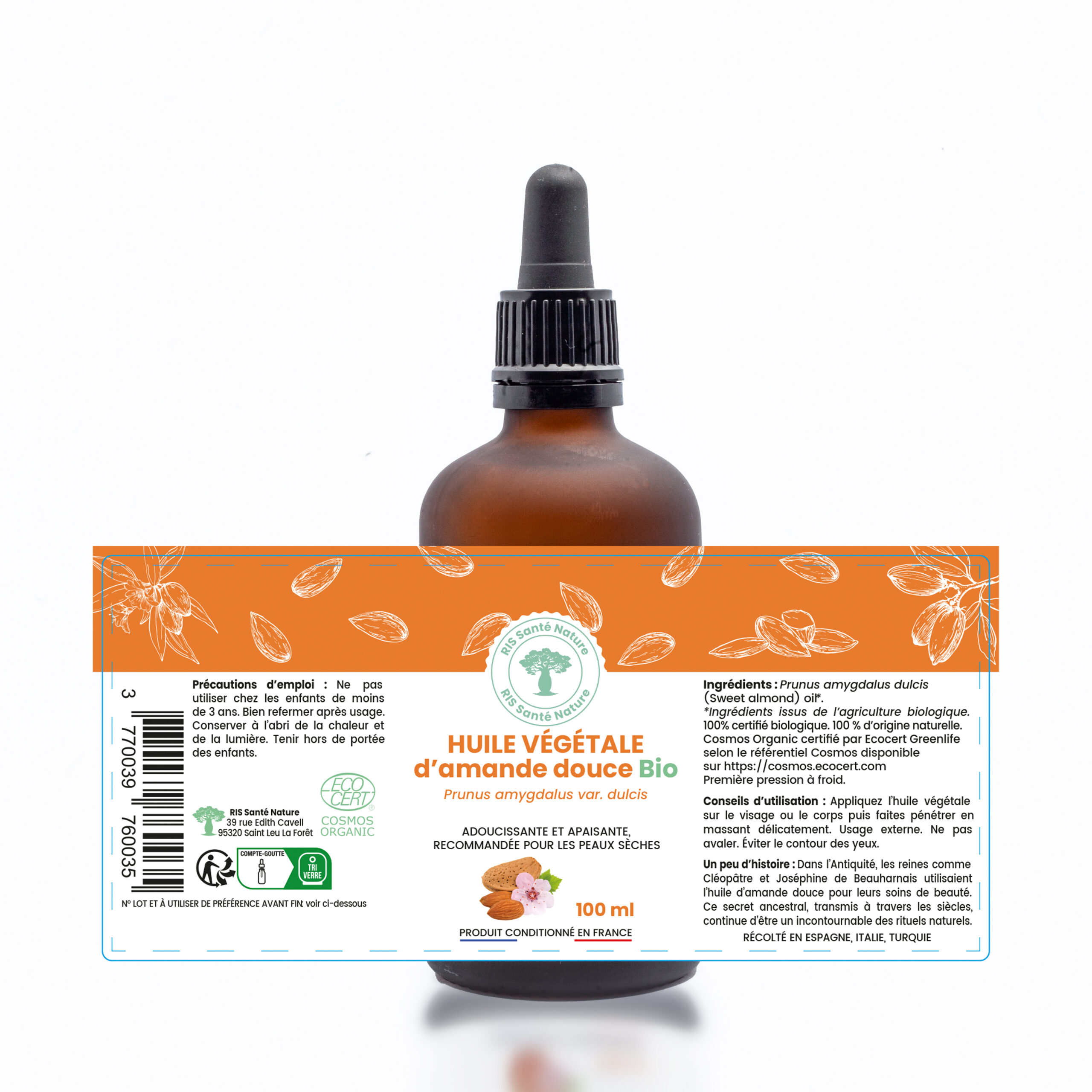 Chez RIS Santé Nature, nous nous engageons à vous offrir une Huile d’Amande Douce Bio de la plus haute qualité.