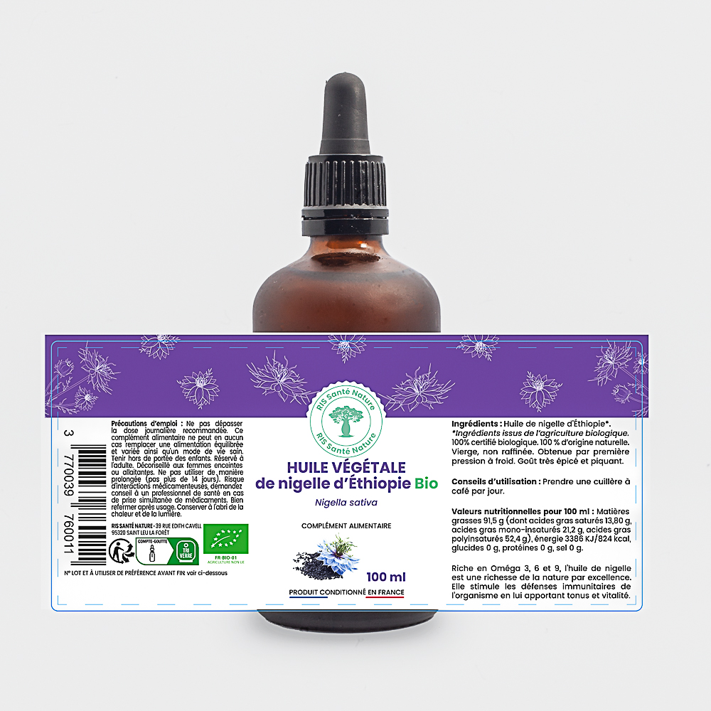 Chez RIS Santé Nature, nous nous engageons à vous offrir une Huile de Nigelle d’Éthiopie BIO de la plus haute qualité.